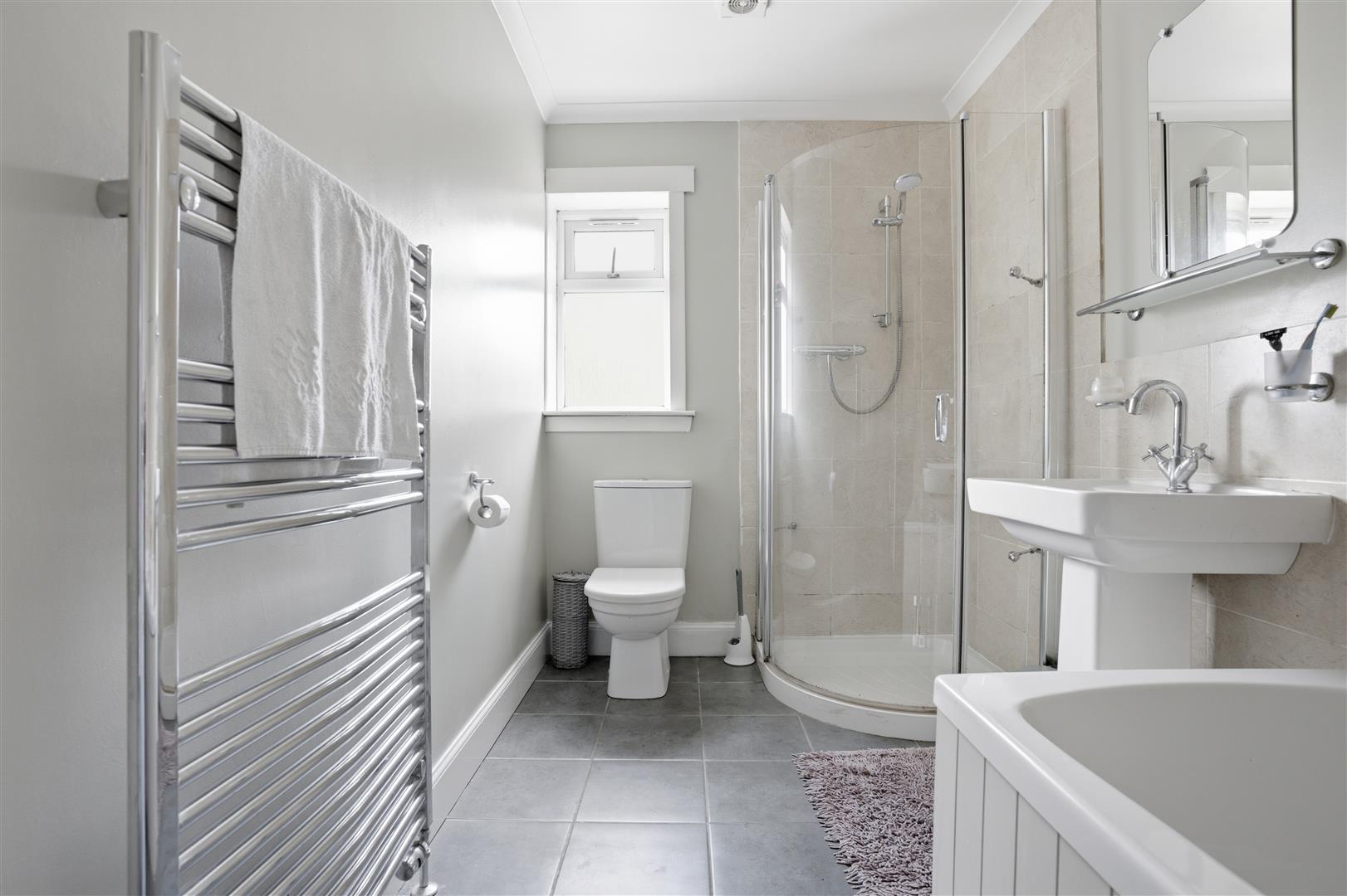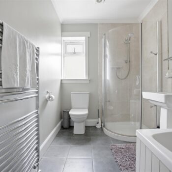 This bungalow features three well-proportioned bedrooms, providing ample space for family or guests. The two bathrooms, including a modern shower room, enhance the functionality of the home, catering to the needs of a busy household.