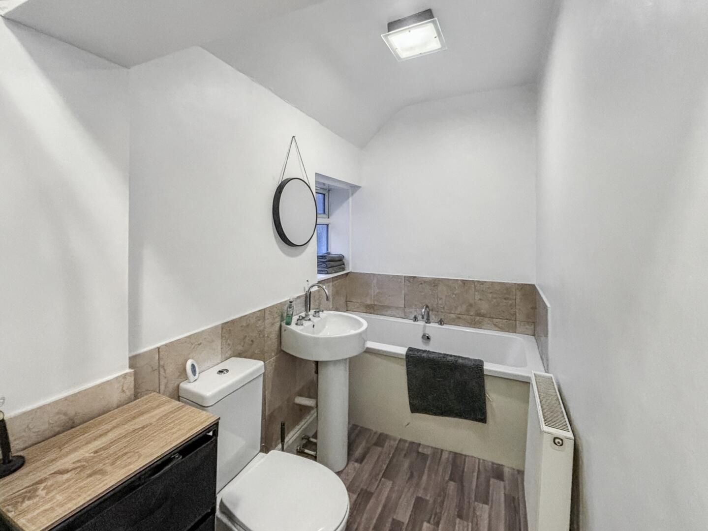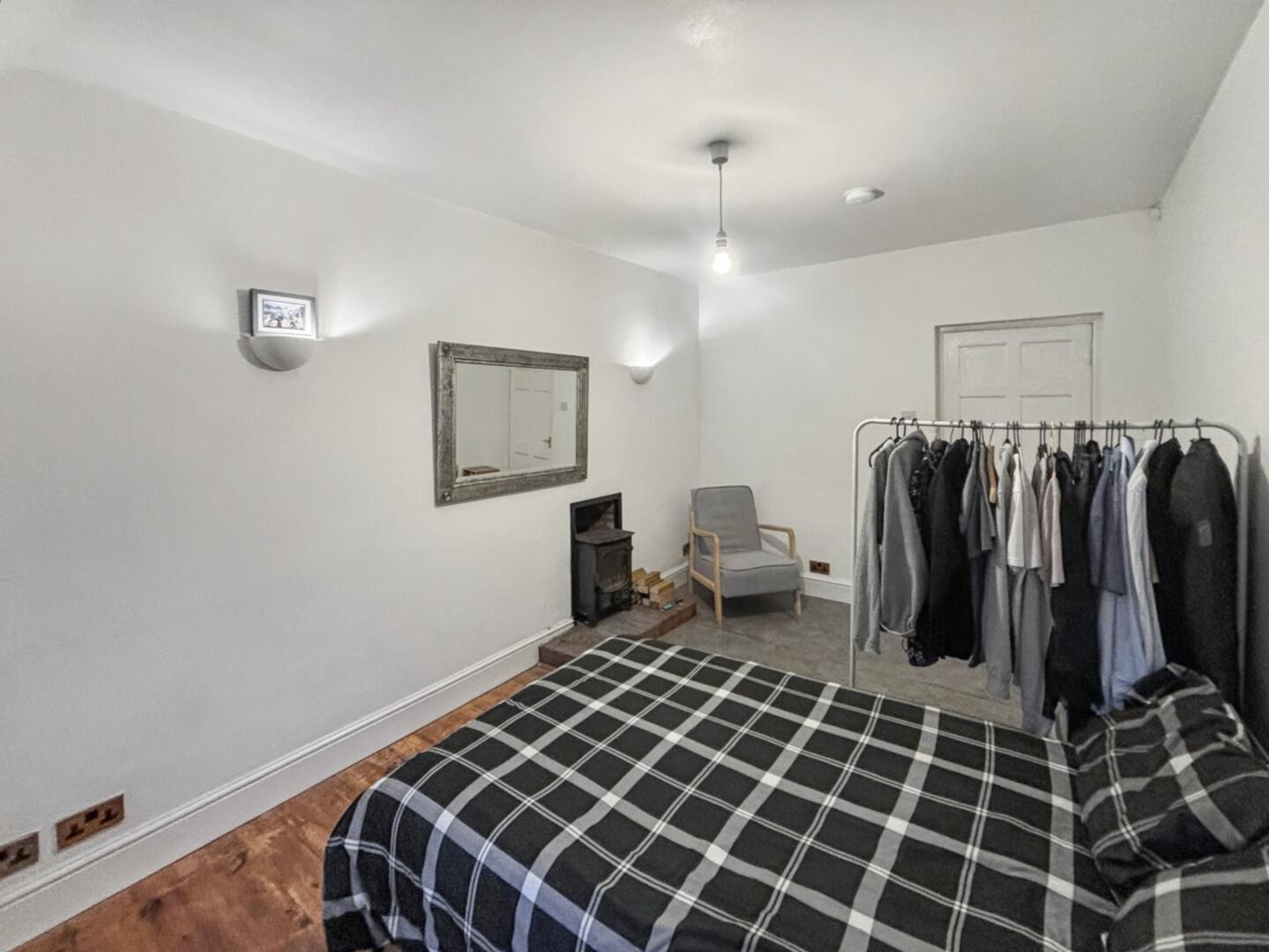 This property is spacious throughout and comprises of. Ground Floor - welcoming hallway, living room with wood burning stove, bedroom and bathroom There is also scope of conversion with the upper room which has a window and units and is floored. Lower Floor - modern kitchen with breakfast bar.