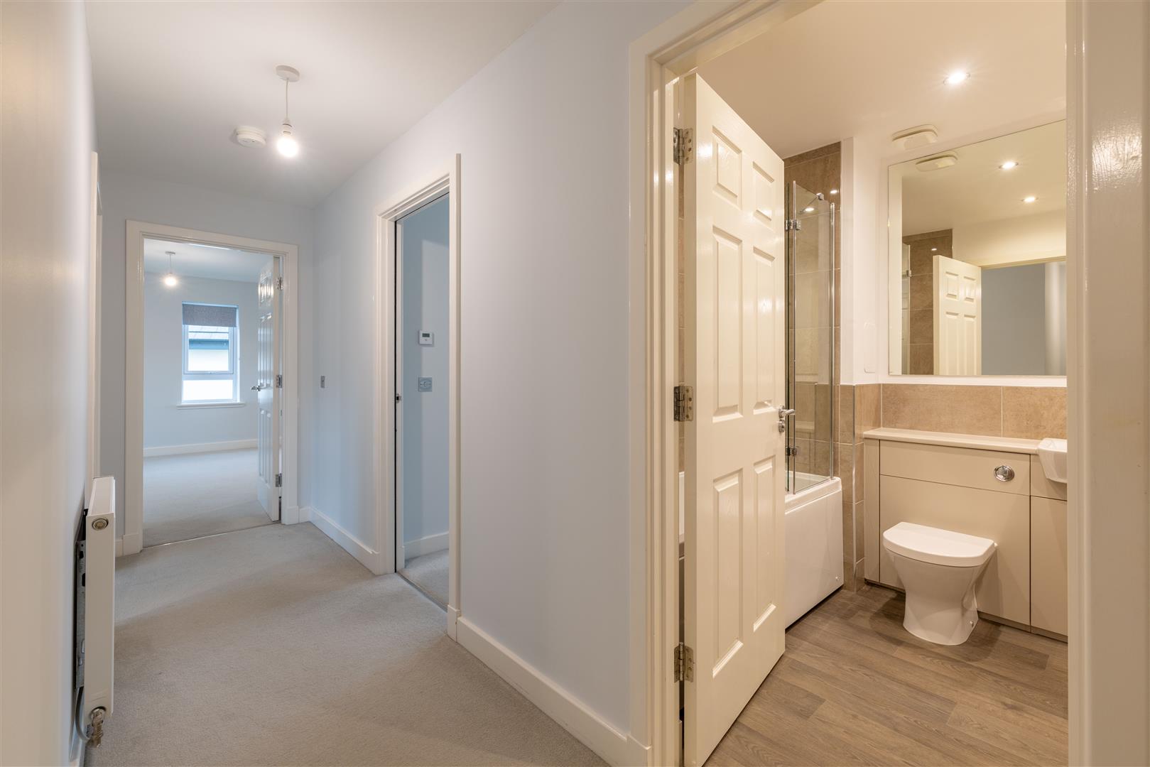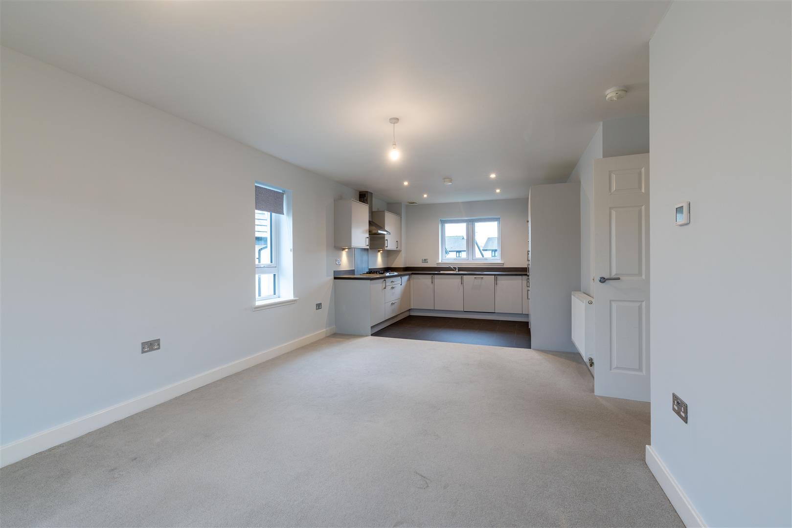 The accommodation comprises a welcoming entrance hall, a generous open-plan kitchen, dining and living area with integrated appliances, two well-proportioned double bedrooms—one benefitting from an en-suite shower room—and a contemporary family bathroom. Excellent storage solutions are provided throughout the apartment.