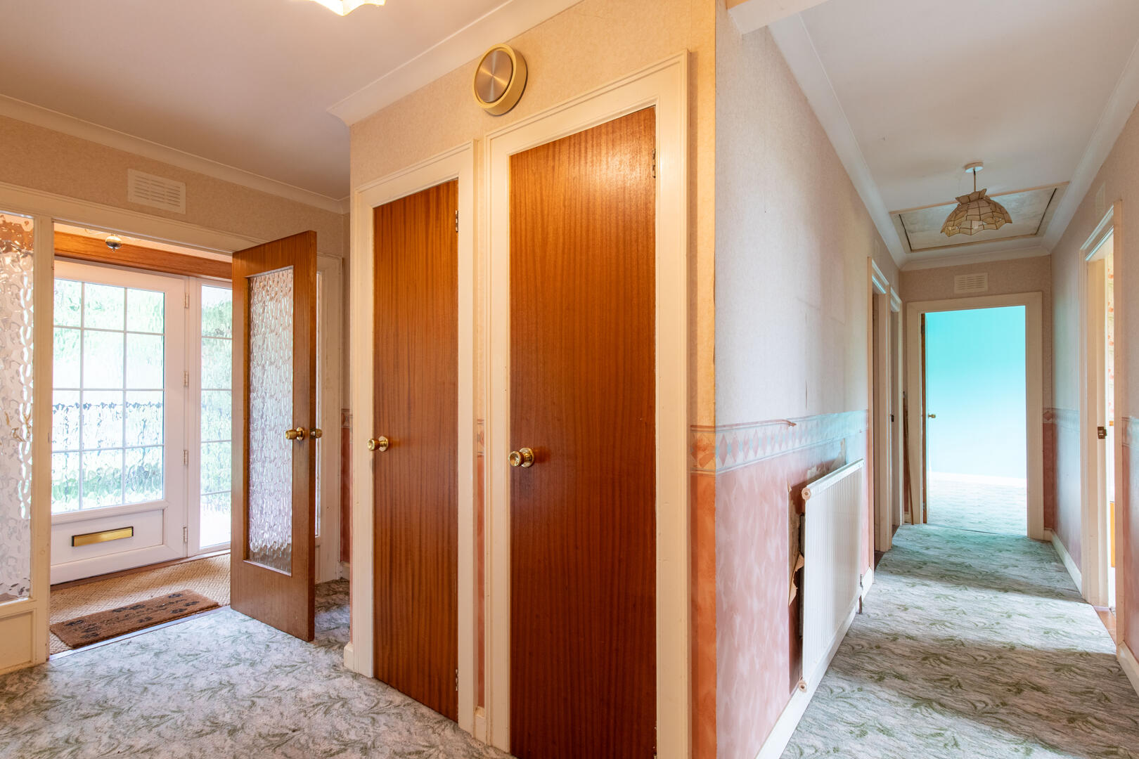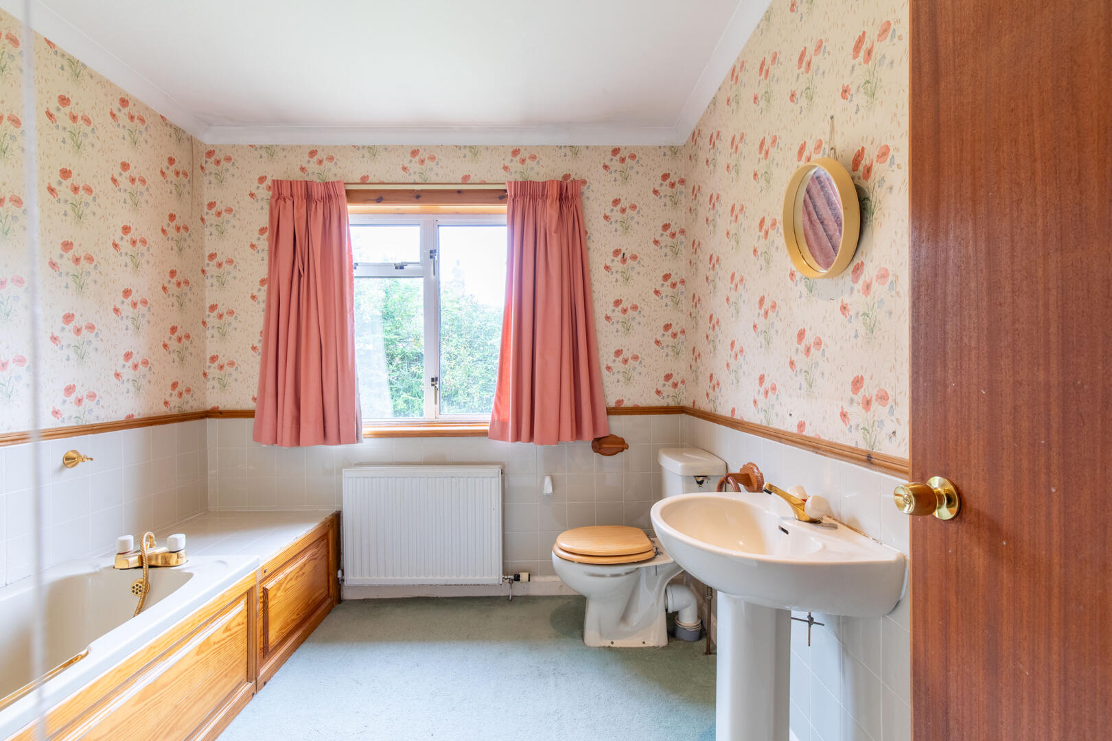 Externally, the property is set on a sizeable plot which offers potential and privacy. The garden grounds are mainly laid to lawn and parking is available off street via a driveway. A garage offers additional storage.