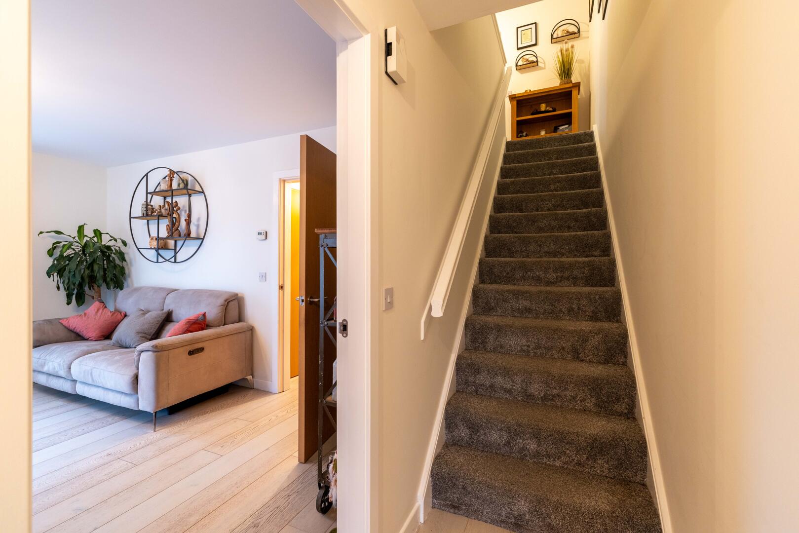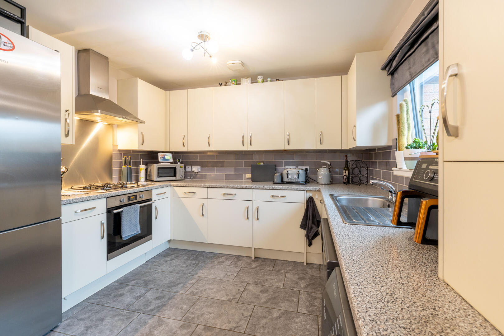 The accommodation is set over two levels and comprises a welcoming entrance hall, a spacious lounge, and a modern kitchen/diner complete with integrated appliances and direct access to the rear garden. The ground floor also benefits from a stylish shower room. Upstairs, there are three generously sized bedrooms and a contemporary family bathroom. The property is in true move-in condition and offers excellent storage solutions throughout.