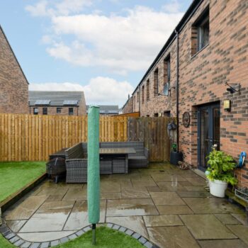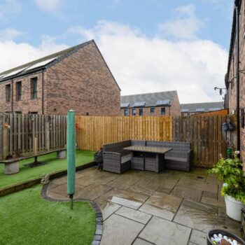 Externally, the villa enjoys a desirable corner plot with garden grounds to the front and rear. Off-street parking is provided via a private driveway. The rear garden features low-maintenance Astroturf and a large patio area—ideal for outdoor dining and relaxation during the warmer months.