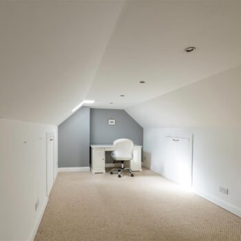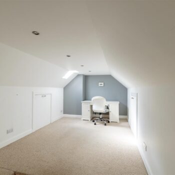 Arranged over two levels, the accommodation comprises a welcoming entrance hallway, a bright and spacious living room with double doors opening to the rear and offering breathtaking views, a modern kitchen/diner, two well-proportioned bedrooms, and a contemporary family bathroom. The property further benefits from a floored attic space, currently utilised as a study, providing additional versatility.