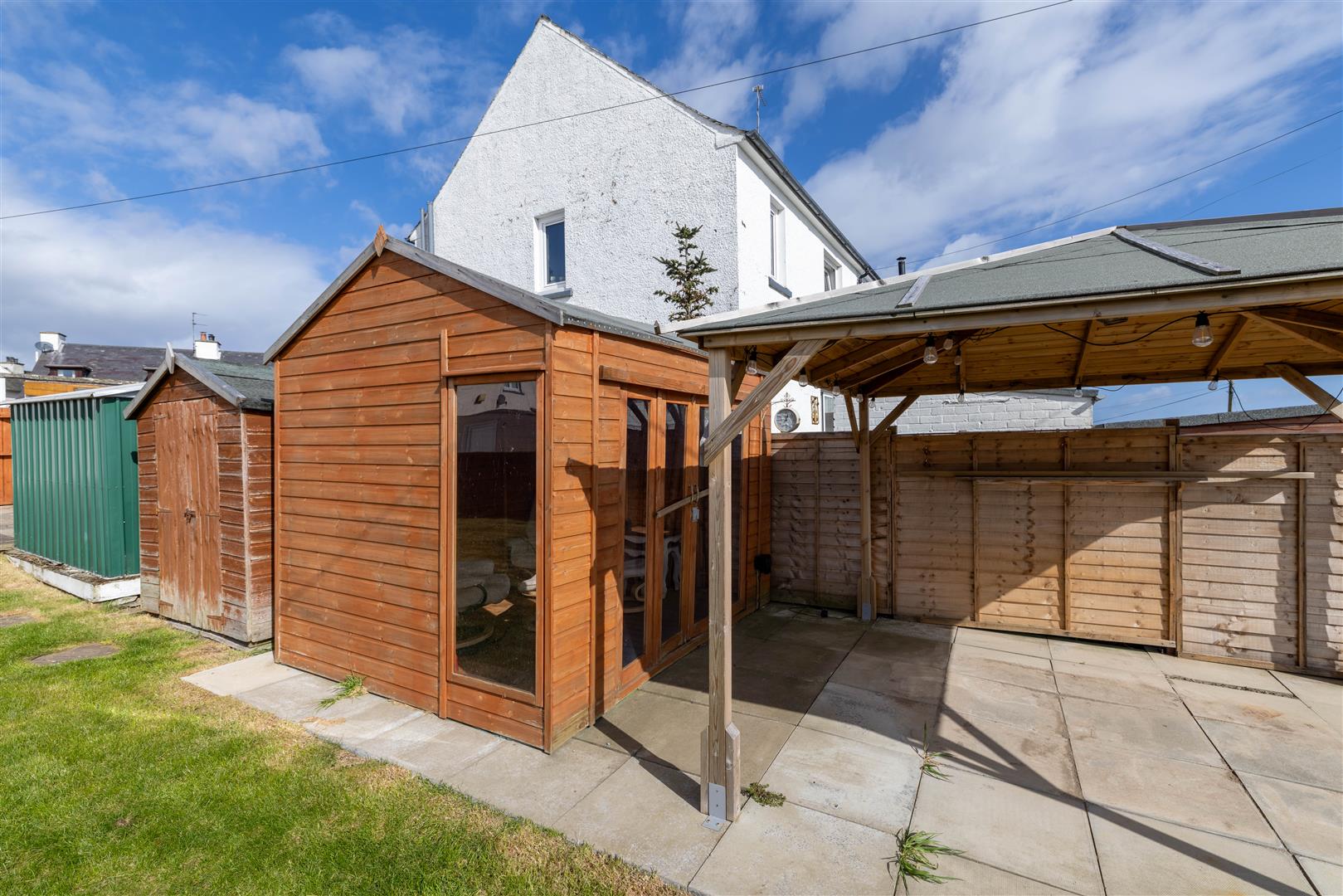 Externally, the property occupies a sizeable plot with stunning open views. There is ample off-street parking available via a driveway accommodating multiple vehicles. The front and rear gardens are predominantly laid to lawn and include a summer house and two outbuildings, creating an ideal setting for both relaxation and entertaining during the summer months.