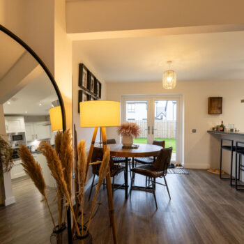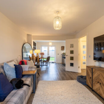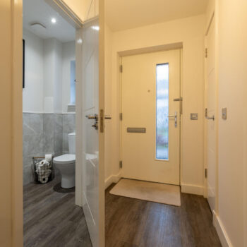 The accommodation is thoughtfully arranged over two levels. On the ground floor, a welcoming entrance hall leads to a spacious lounge, which flows seamlessly into a contemporary open-plan kitchen/diner. The kitchen is fully equipped with integrated appliances and enjoys direct access to the rear garden via double doors, making it ideal for both everyday living and entertaining. A convenient W.C. completes the ground floor.