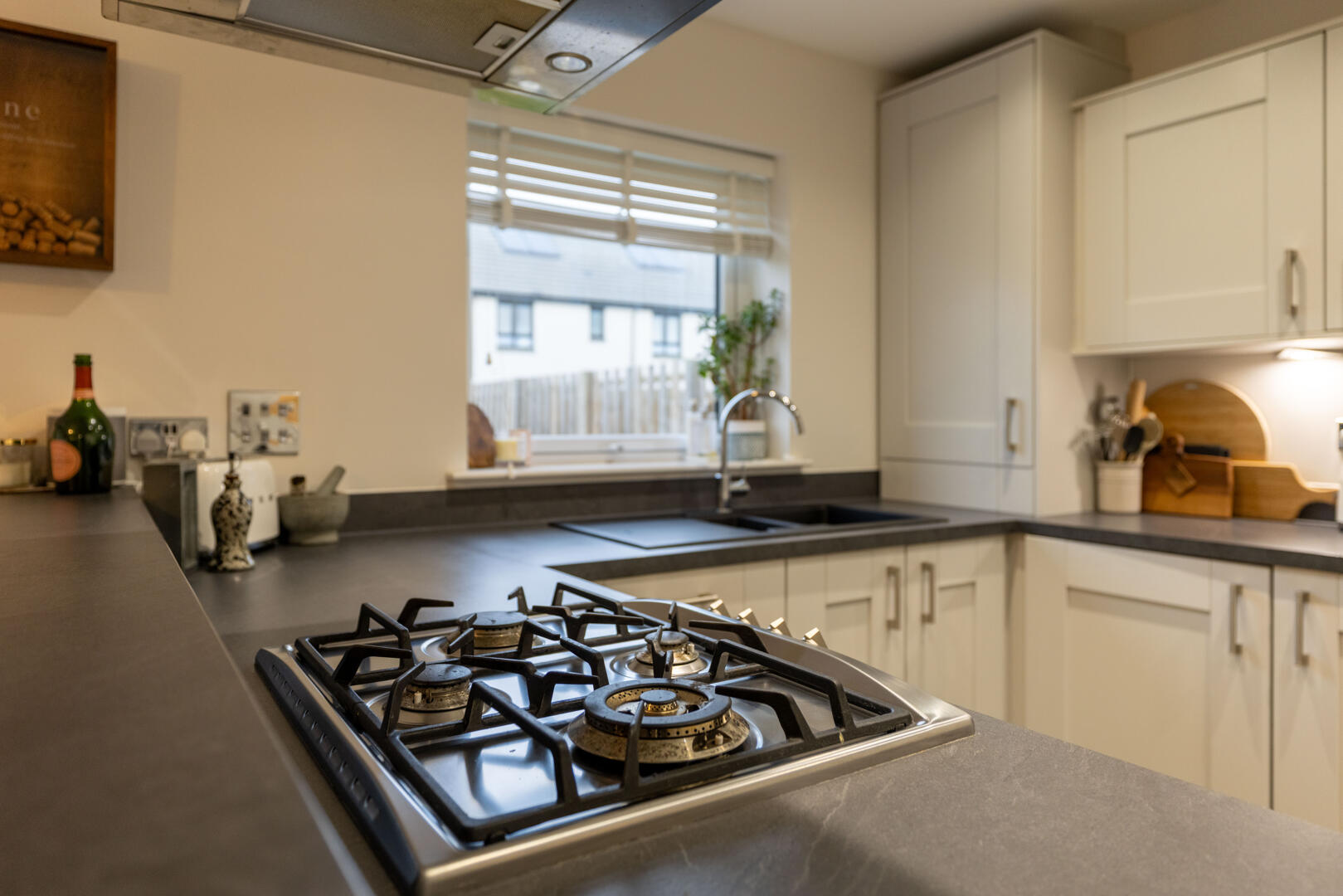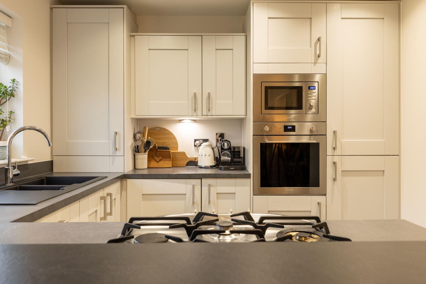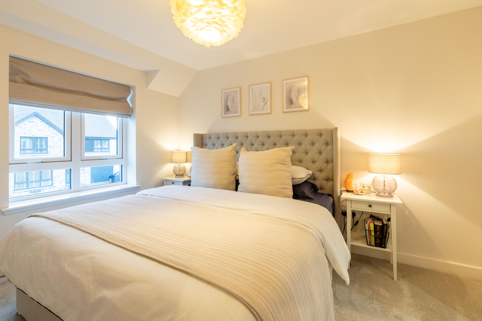 The upper level comprises three generously proportioned bedrooms, with the principal bedroom benefiting from a modern en-suite shower room. A well-appointed family bathroom serves the remaining bedrooms. The property also benefits from excellent built-in storage throughout.