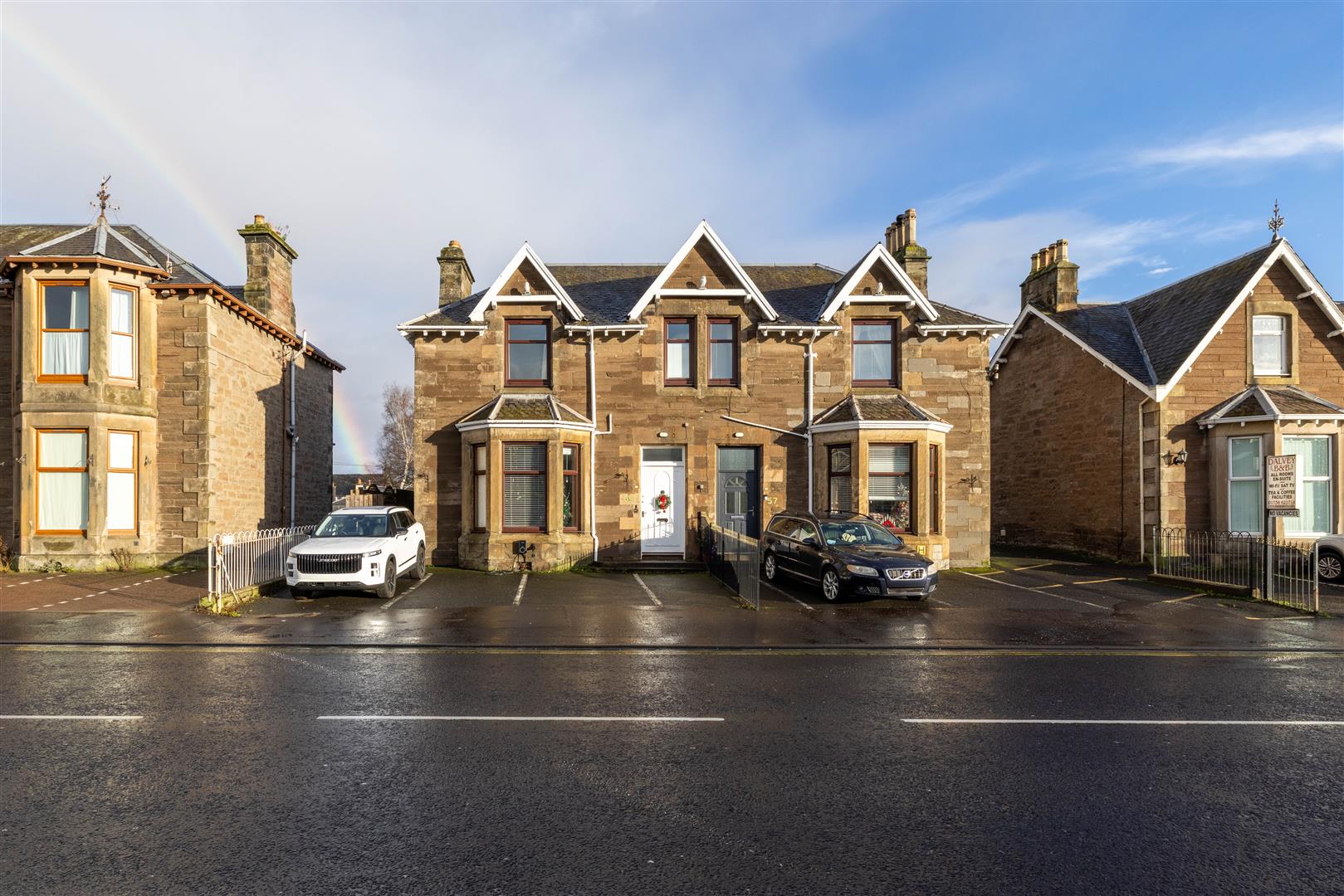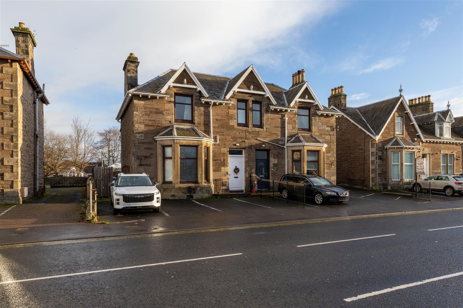 Externally, the villa features garden grounds to the rear, providing a tranquil outdoor space for relaxation or play. Additionally, there are two parking spaces available at the front, offering convenience for residents and guests alike.