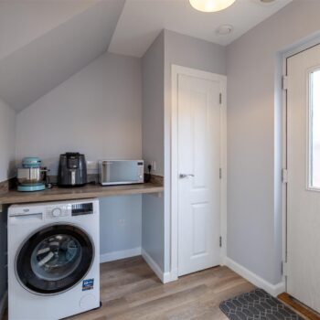 As you enter the property, there is a generous sized lounge, perfect for cosy evenings in. The modern kitchen/diner is well-equipped, with french doors out to the rear. The property also boasts a separate utility area and a W.C completing the ground floor.