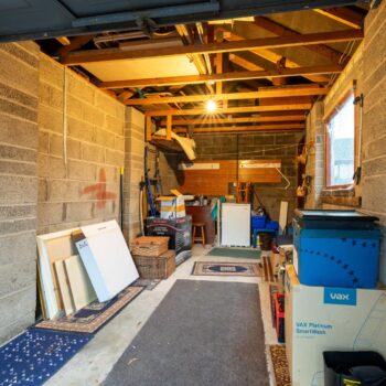 Externally, the west-facing garden is designed for easy upkeep, and off-street parking is available via a private driveway which leads to a garage.