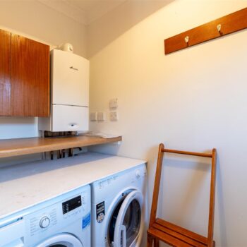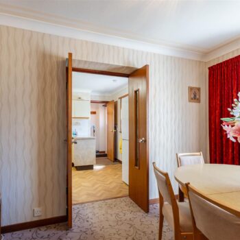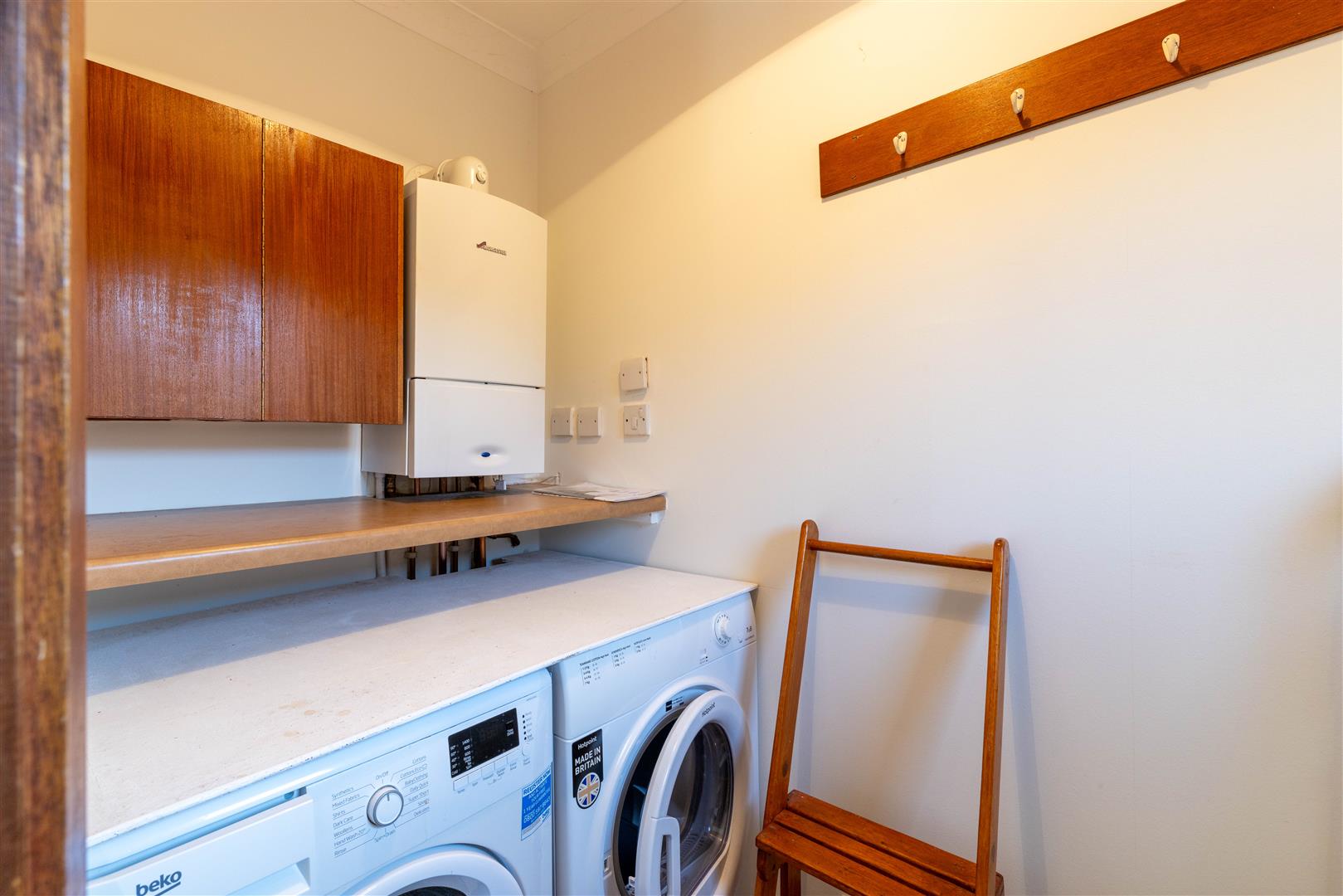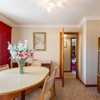 The accommodation is set over one level and comprises a welcoming entrance hall, a bright and spacious living room, an extended kitchen with adjoining utility room and direct access to the rear garden, a separate dining room, two well-proportioned double bedrooms with built-in storage, and a modern shower room. The property further benefits from gas central heating and double glazing throughout.