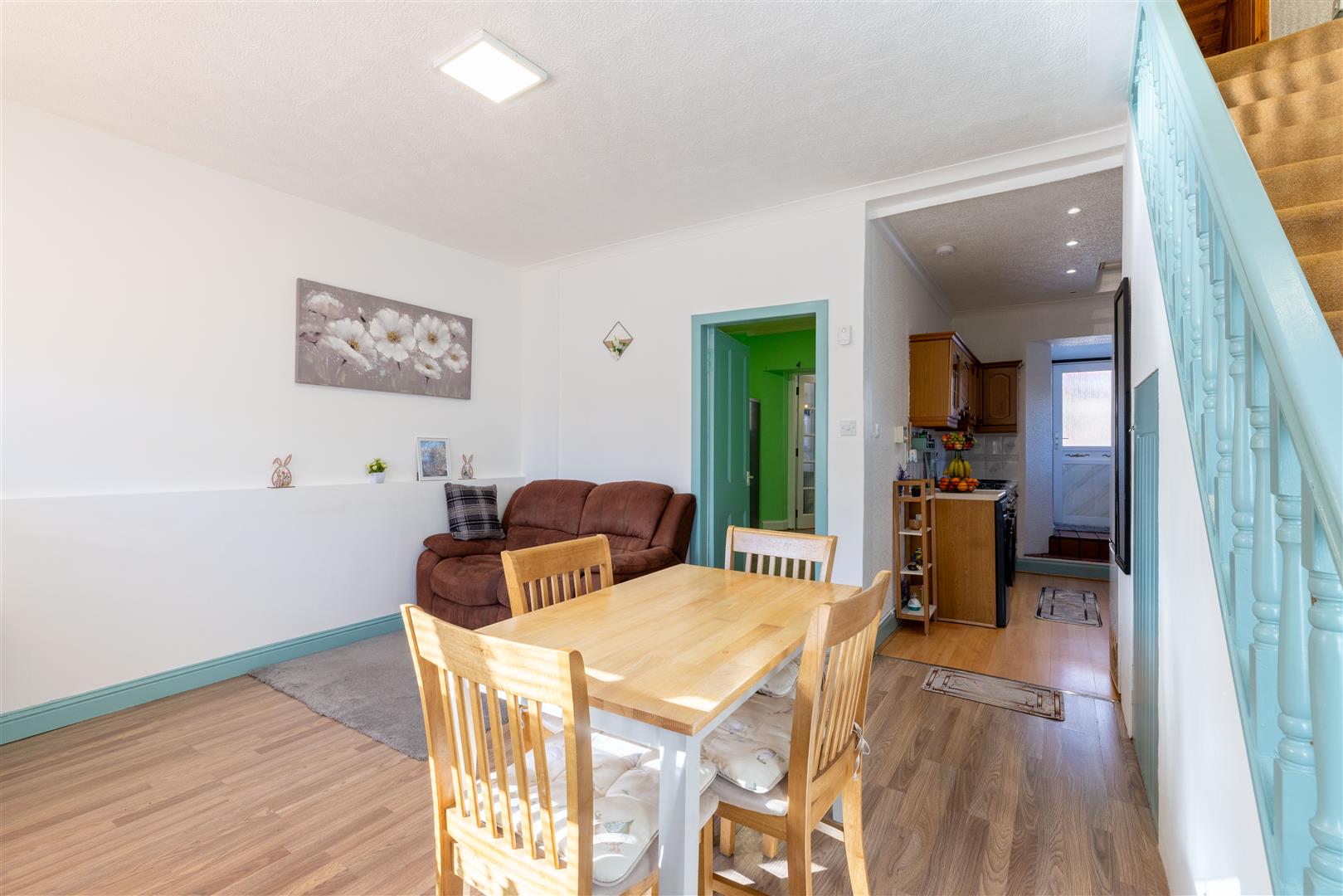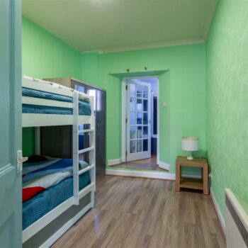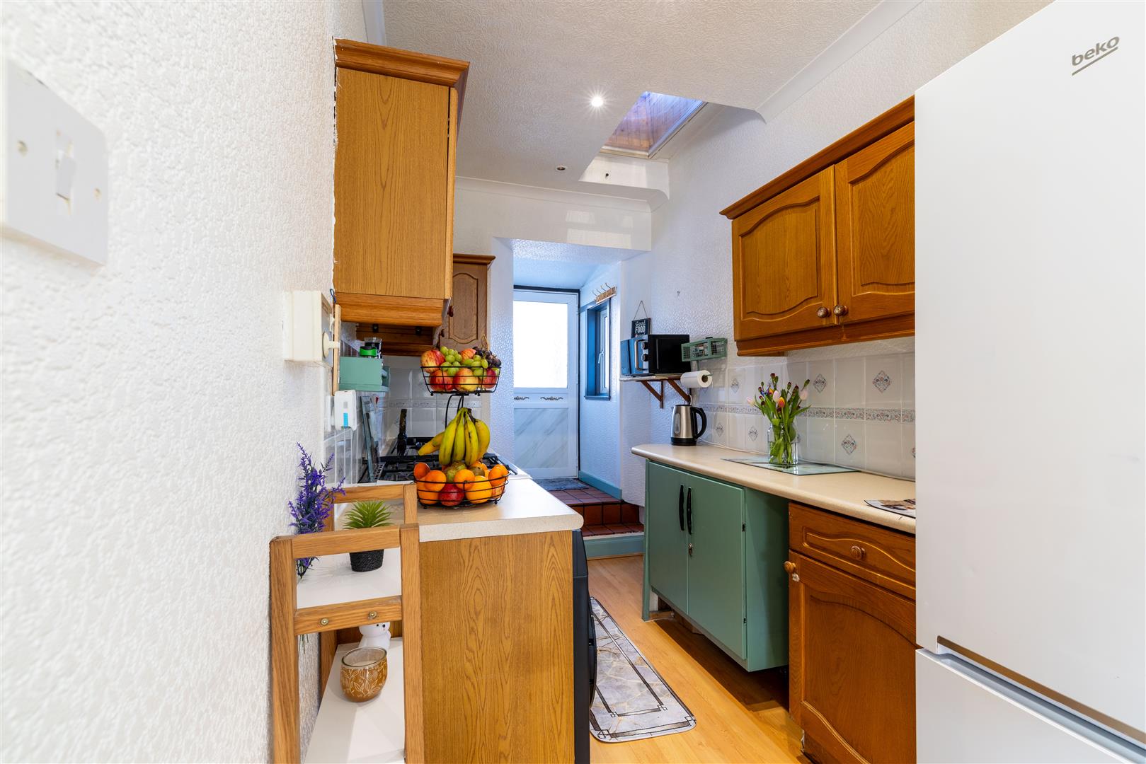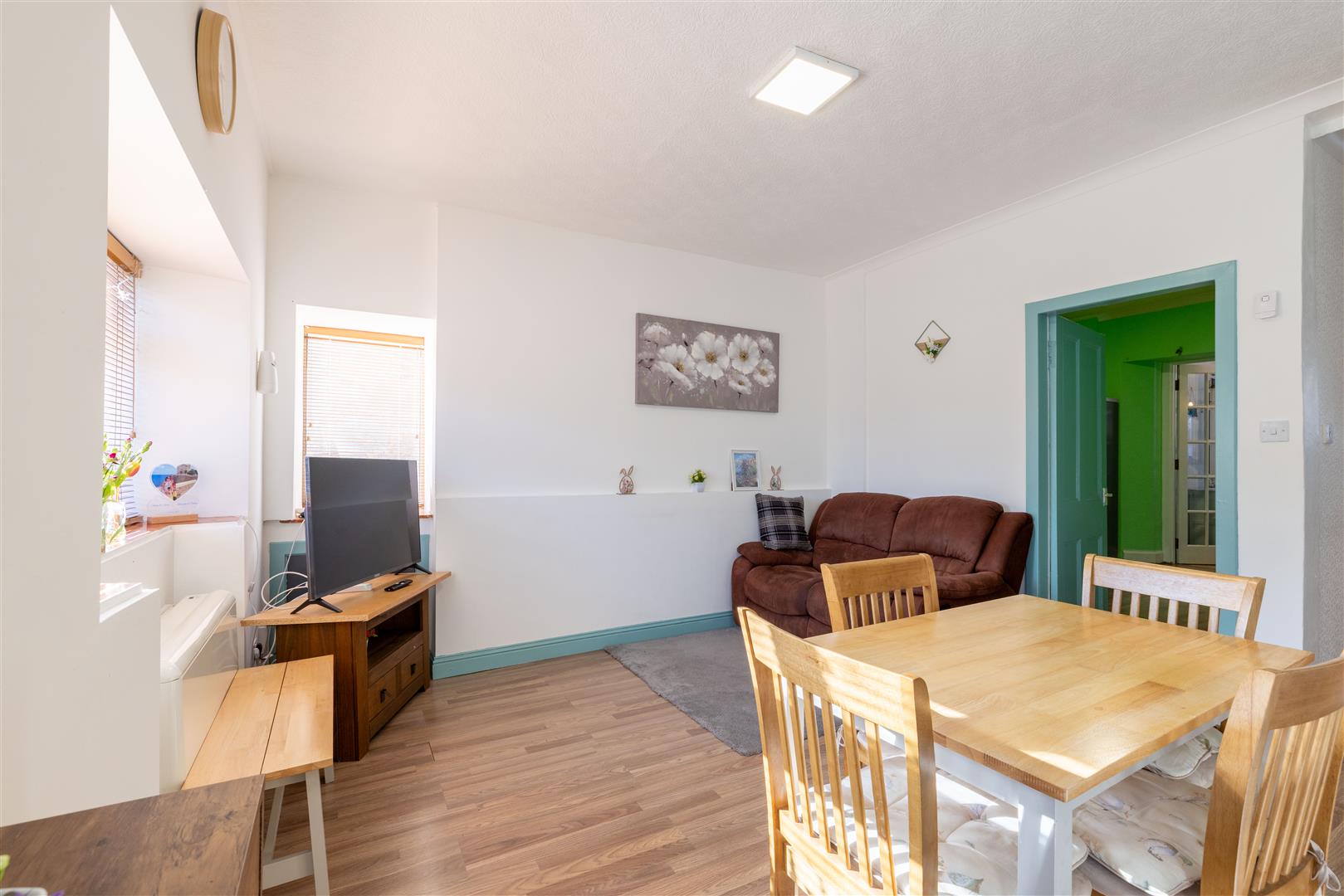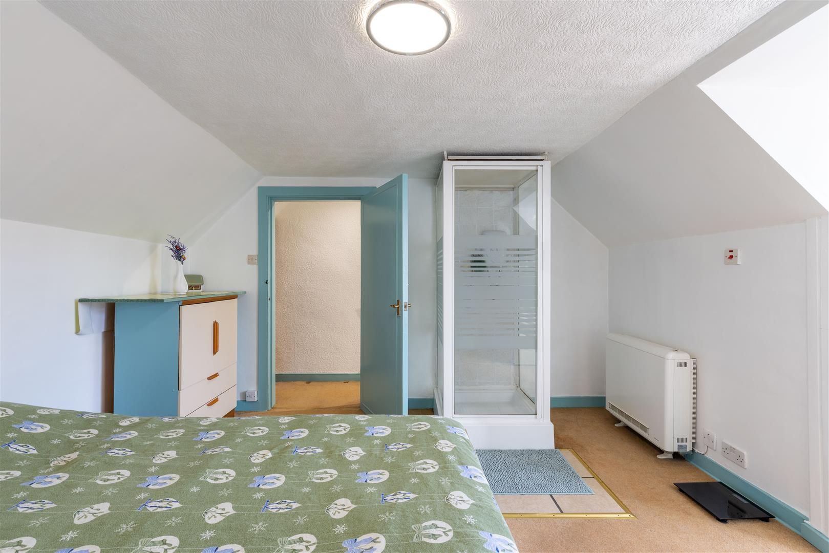 The property is set over two levels and comprises an open-plan living and dining area, kitchen, bathroom, and a well-proportioned ground-floor bedroom. The upper level hosts a further generously sized bedroom.
