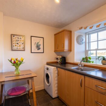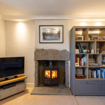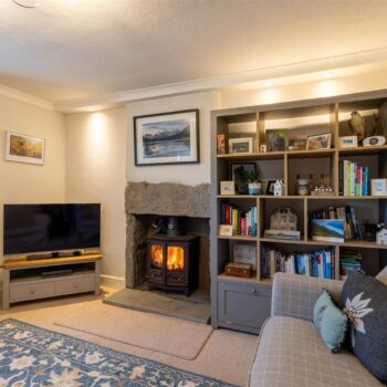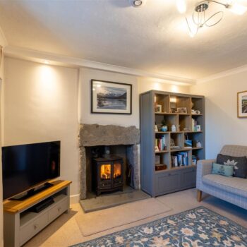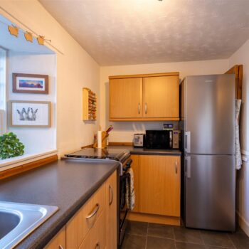 Accessed via its own main door, the accommodation comprises a welcoming entrance hall with a generous storage cupboard, a spacious and inviting living room featuring a wood-burning stove, a modern fitted kitchen, two well-proportioned double bedrooms, and a contemporary bathroom. The property further benefits from gas central heating and double glazing throughout.