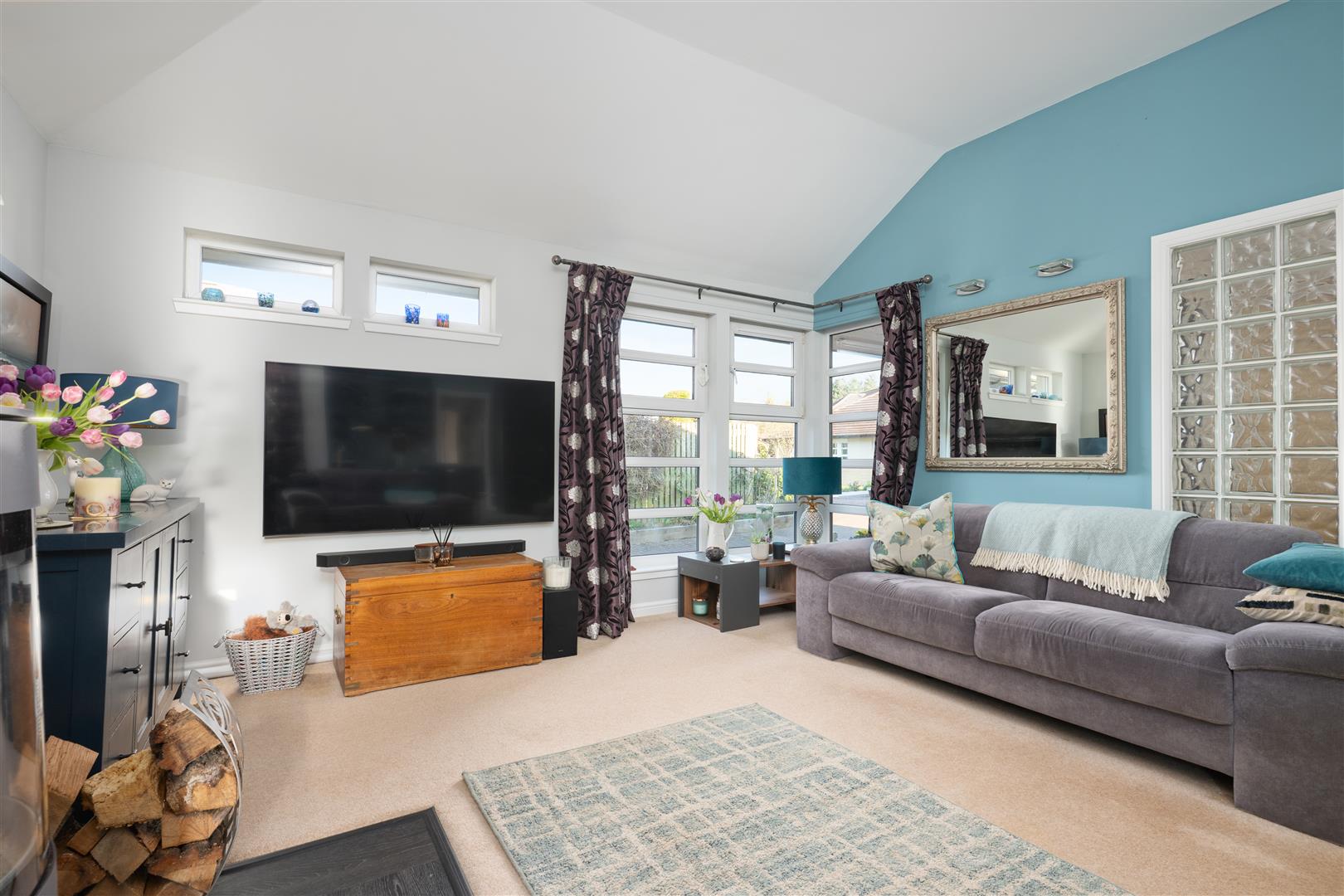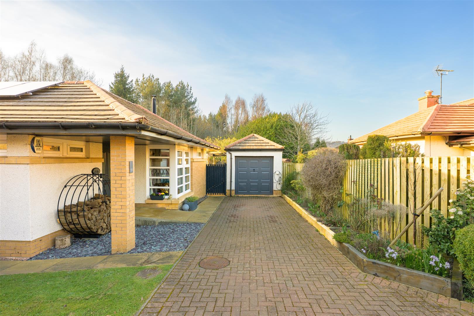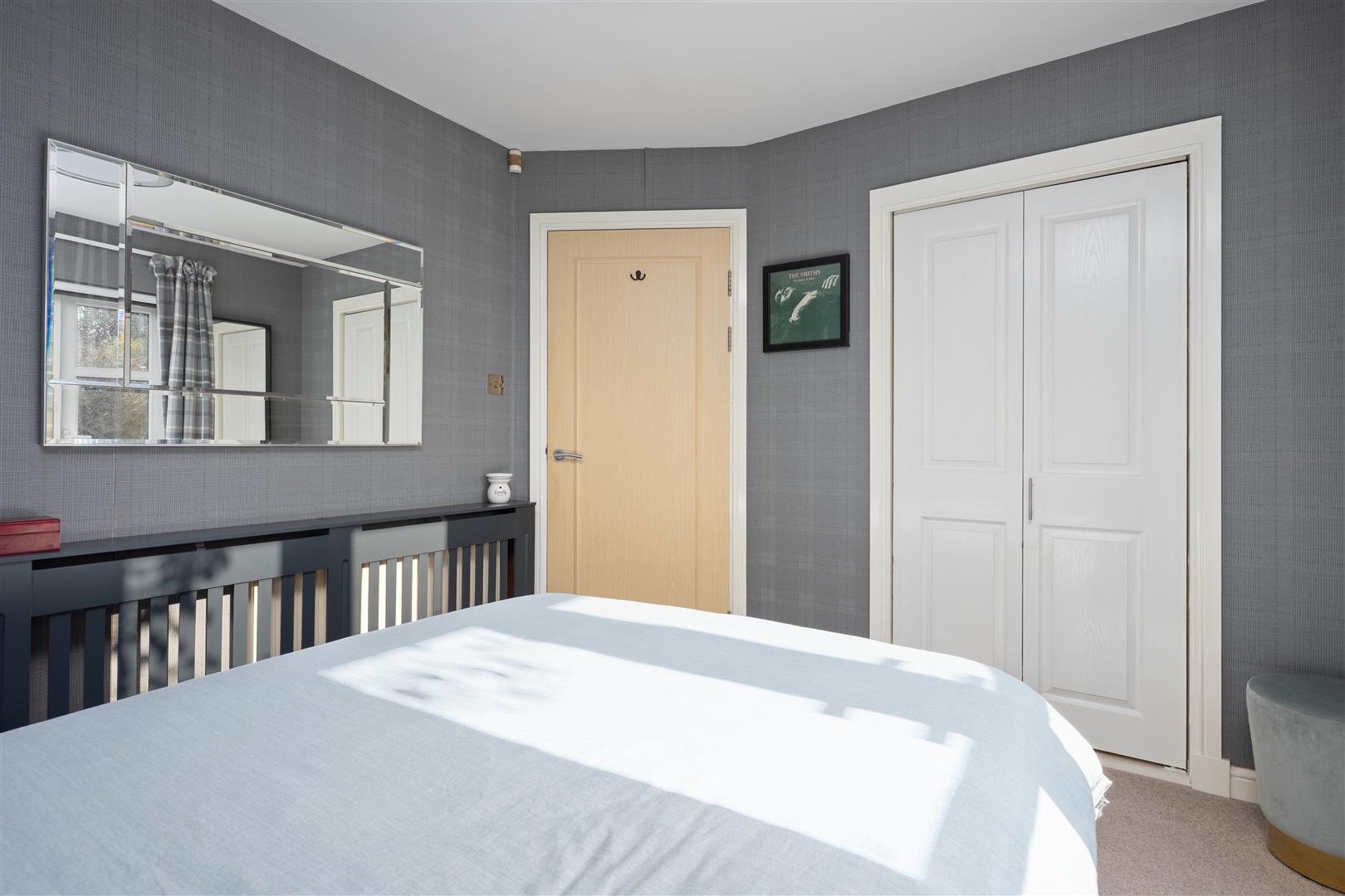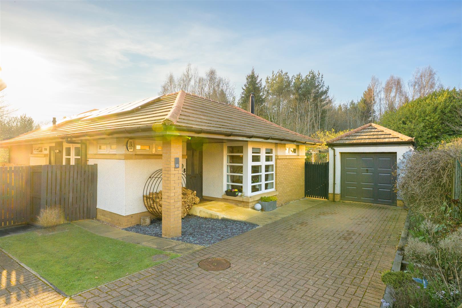 There are three generously sized double bedrooms, with the principal bedroom benefiting from a newly fitted en-suite. All bedrooms feature patio doors opening onto the garden, allowing natural light to flood the interiors. A beautifully appointed family bathroom completes the accommodation. The property further benefits from excellent storage throughout, gas central heating, and double glazing.