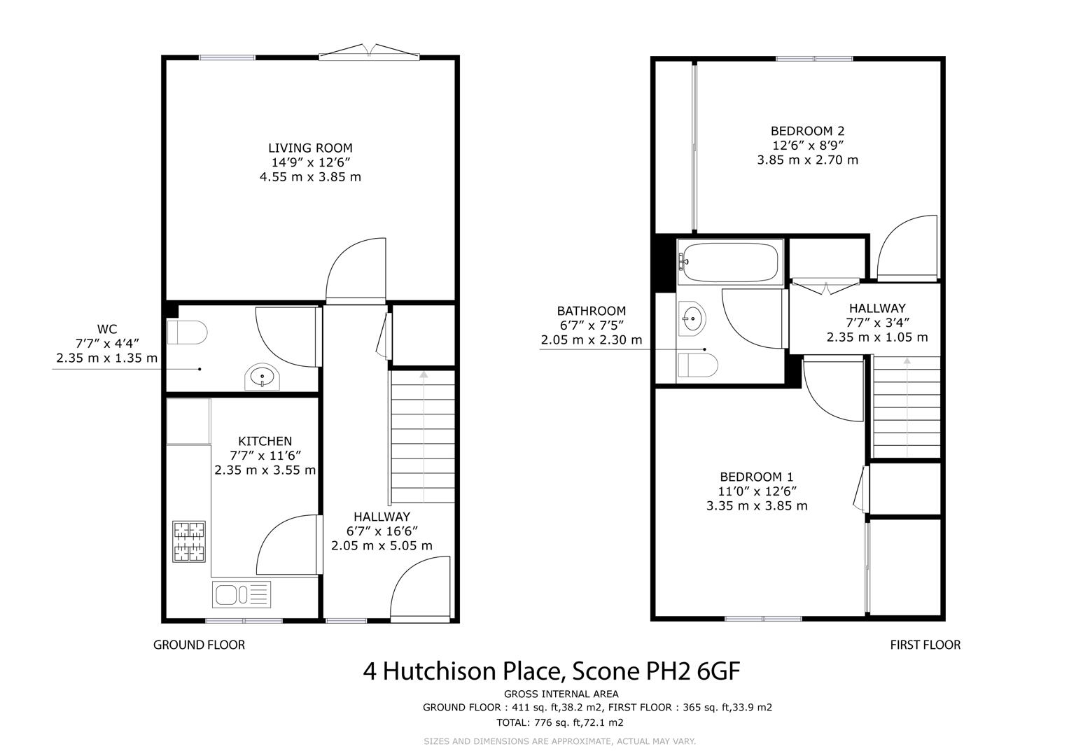 - 2 bedrooms