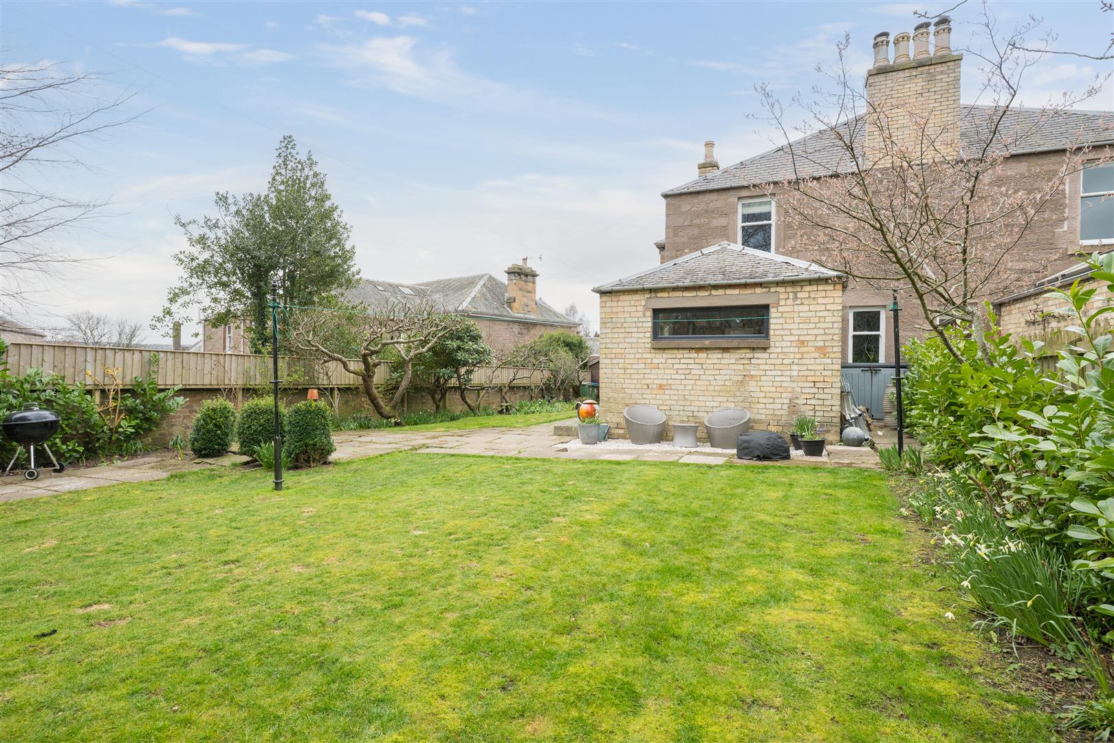 Externally, the property benefits from off-street parking to the front via a private driveway. The home enjoys lovely open views towards the River Tay, while the surrounding garden grounds wrap around the property, primarily laid to lawn with a patio area—perfect for outdoor dining and enjoying the summer months.