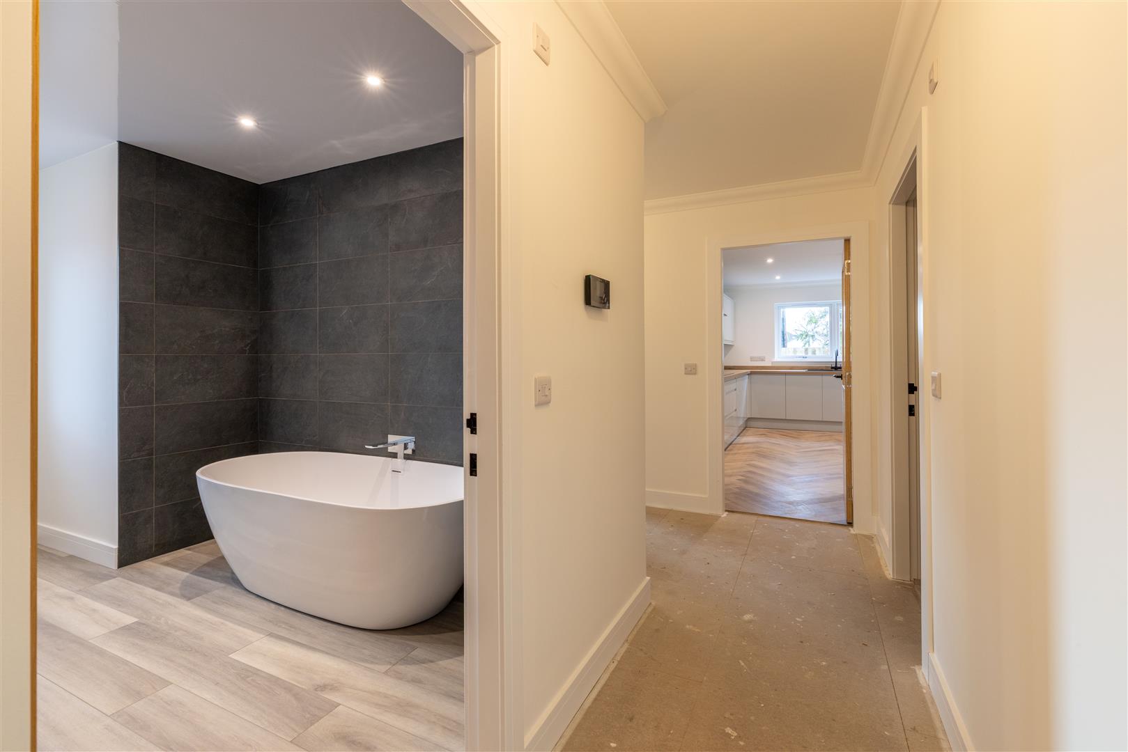 Plot 1 offers well-designed and generously proportioned accommodation throughout. The property opens into a welcoming and bright entrance hall, leading to a spacious living room and a beautifully appointed open-plan kitchen/diner with integrated appliances and direct access to the rear garden — ideal for modern family living and entertaining. A separate utility room adds further practicality.