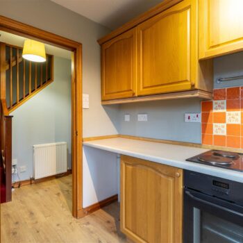 Thoughtfully arranged, offering accommodation across two levels, the property features a spacious lounge/dining room which provides an inviting area for relaxation and entertaining. The kitchen is well-appointed, offering both functionality and style. Upstairs, you’ll find two comfortable bedrooms that provide built-in storage, along with a family bathroom, completing the layout.