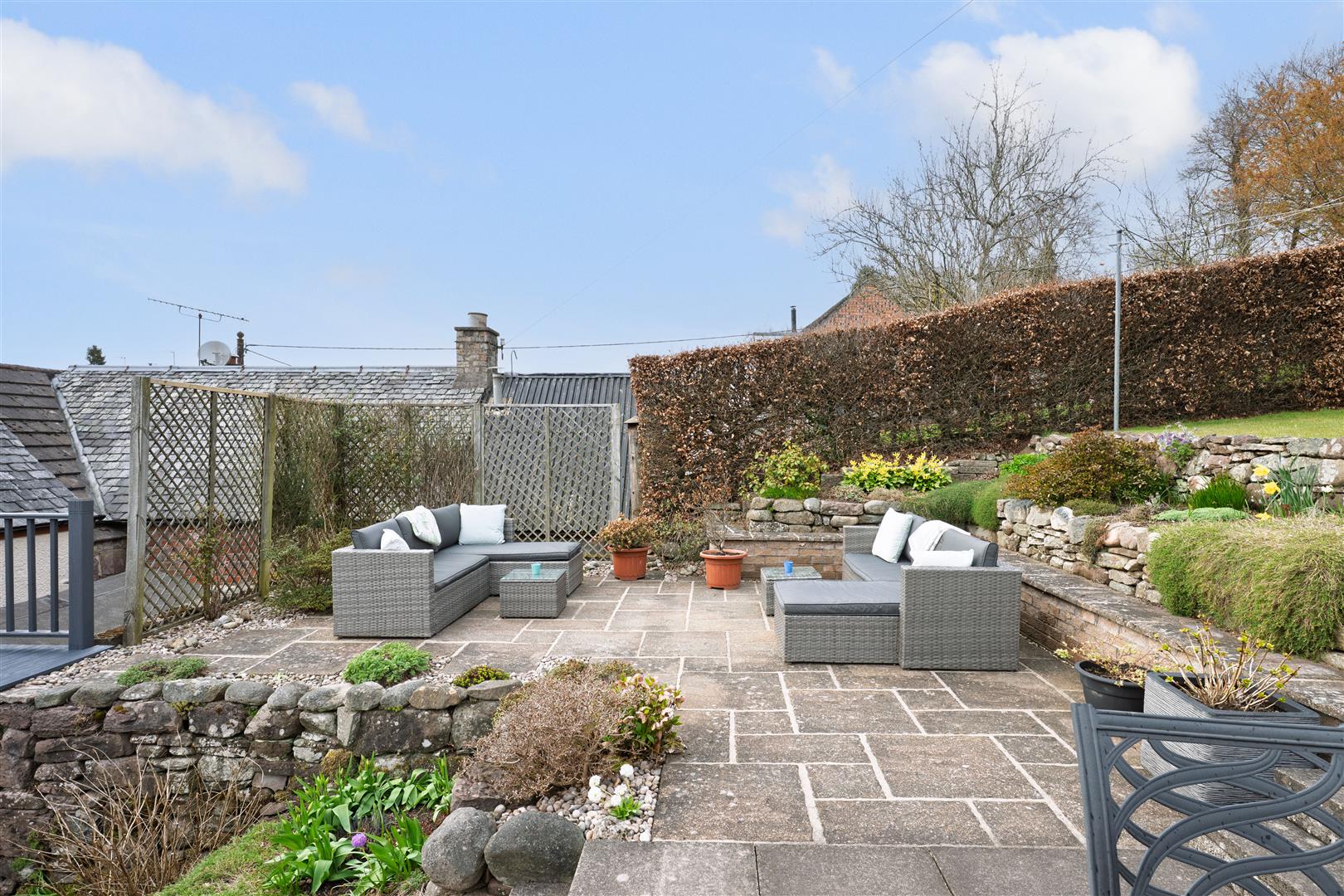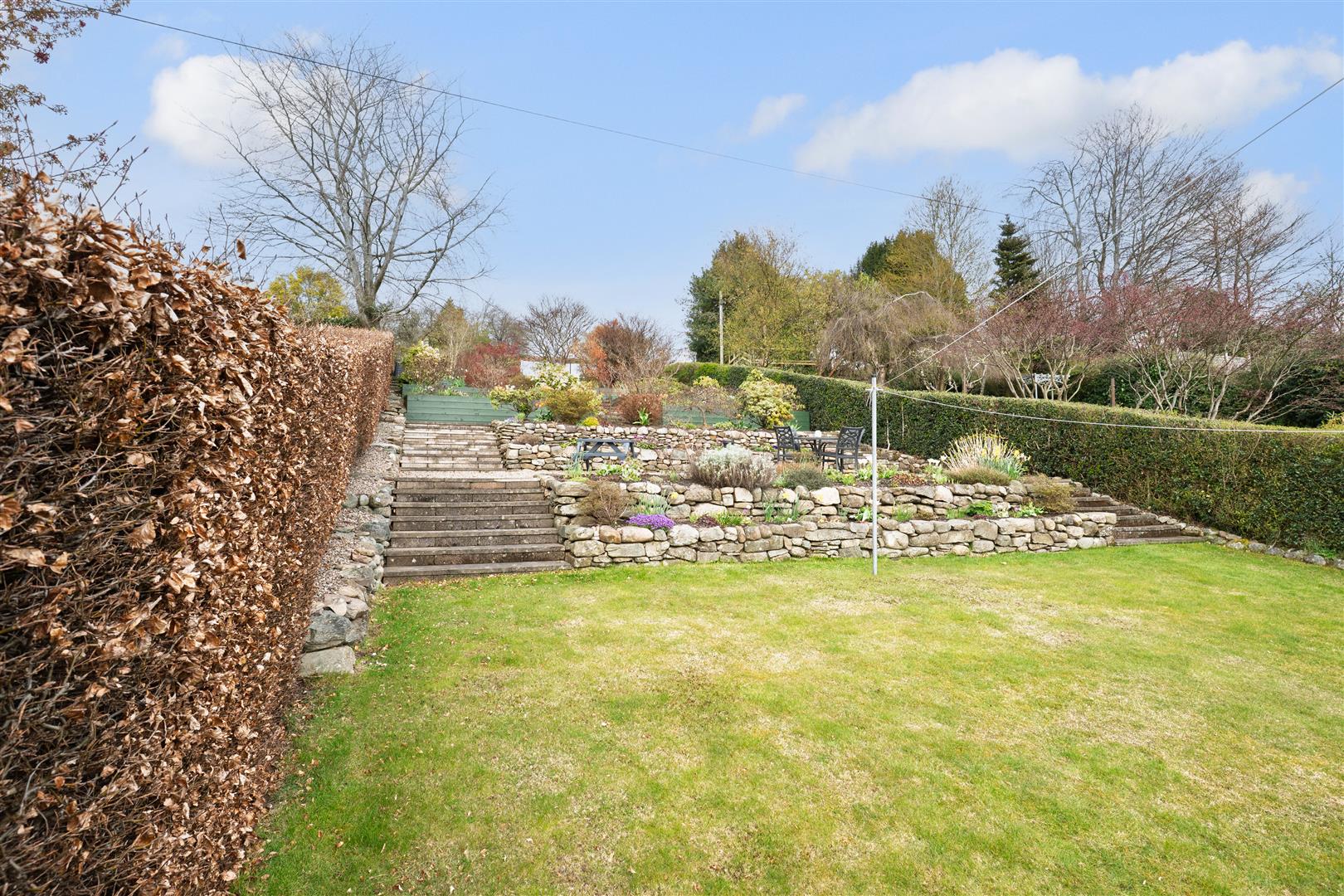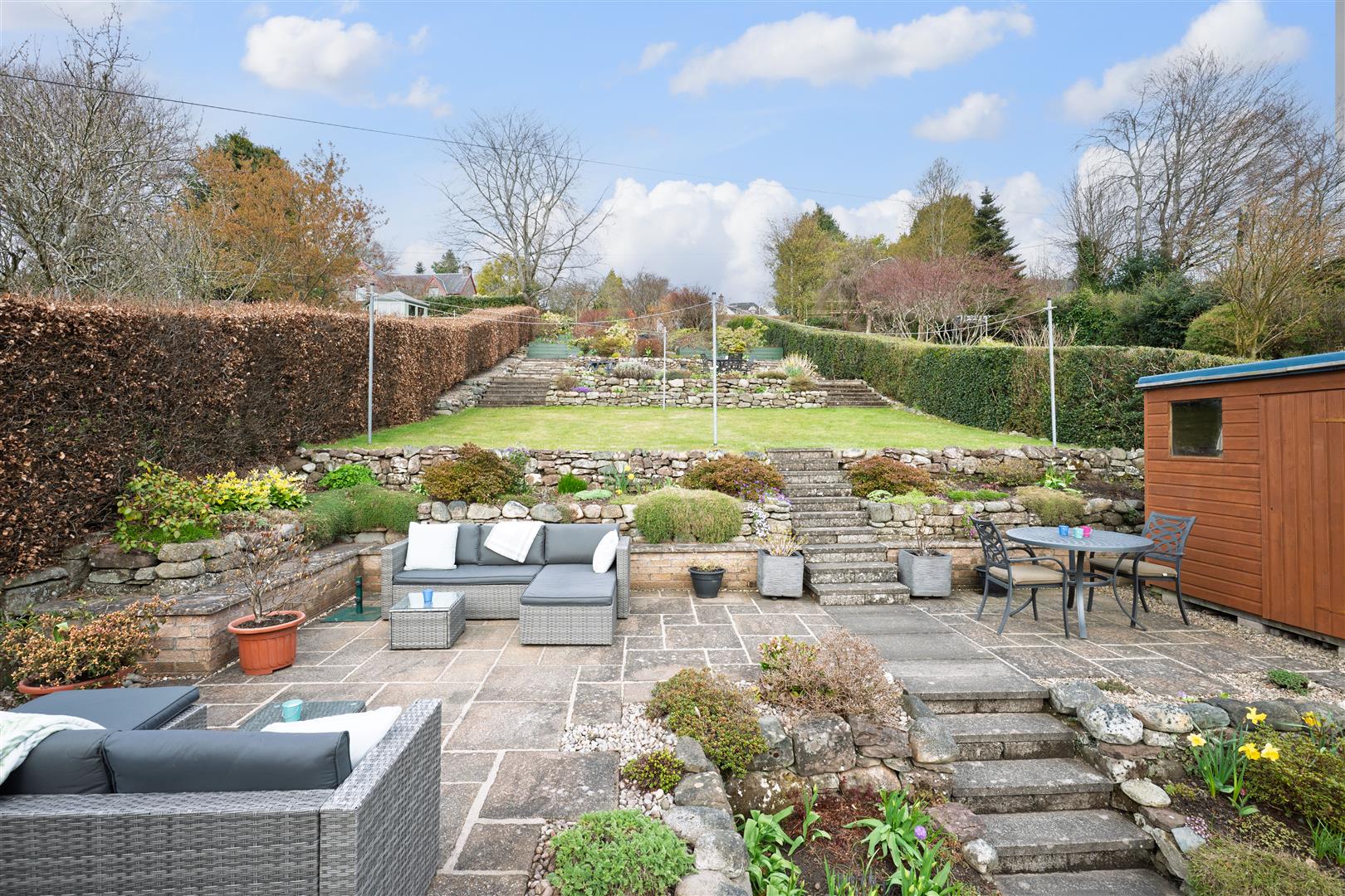 Externally, the property boast a generously sized sloped rear garden that has been terraced and well maintained with flower beds, lawn, chipped and slabbed patio areas for sitting out and enjoying the finer weather.