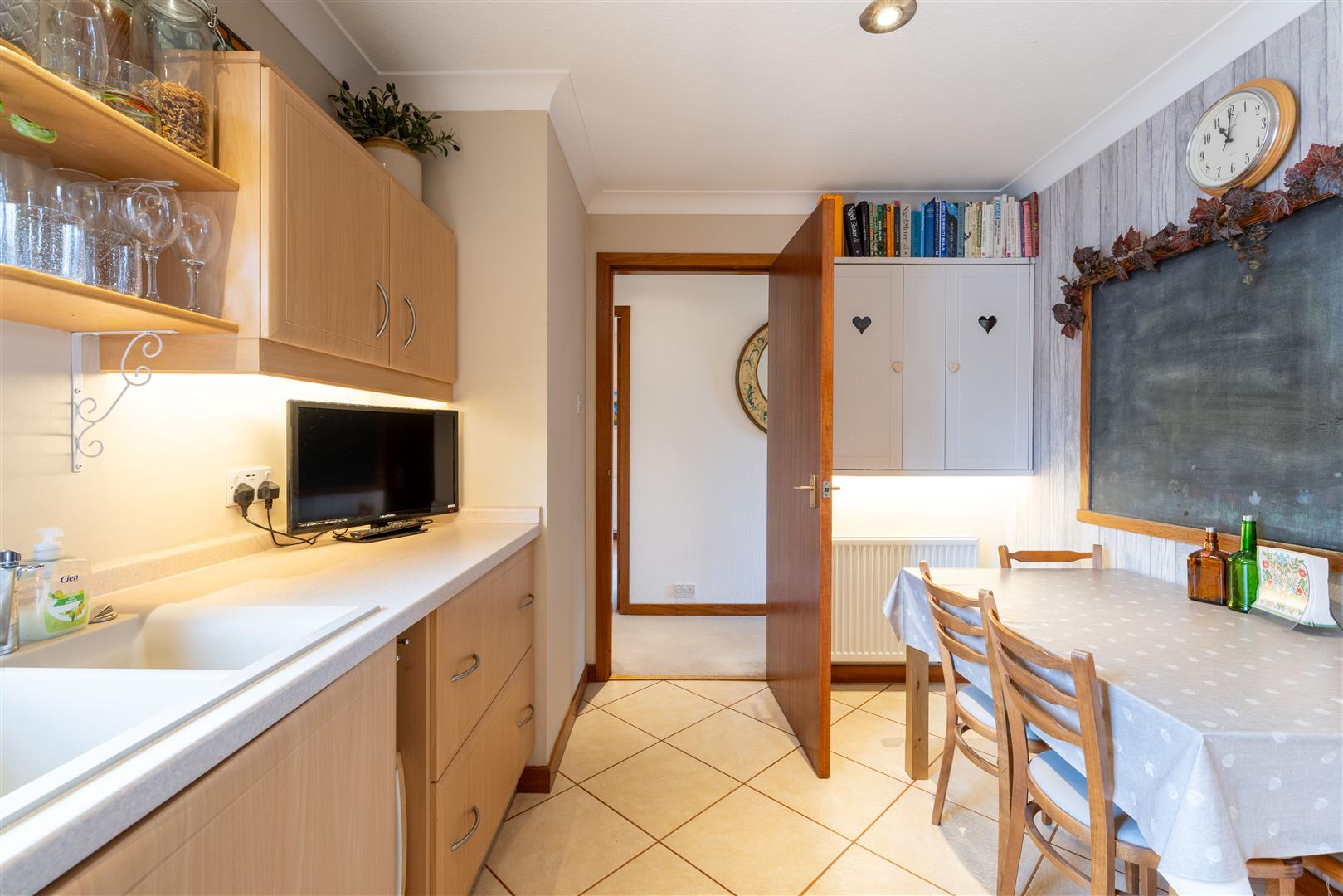 The bungalow is equipped with oil central heating and is double glazed throughout, ensuring warmth and energy efficiency. To the front, a monobloc driveway provides private parking leading to a single garage, while the garden grounds encompass both front and rear spaces. The enclosed rear garden is predominantly laid to lawn, complemented by planting areas and a paved patio, creating an excellent setting for alfresco dining and entertaining guests.