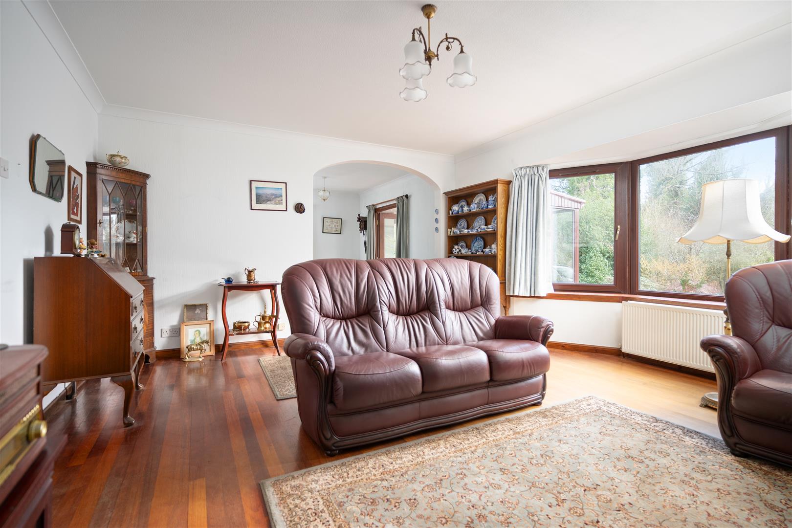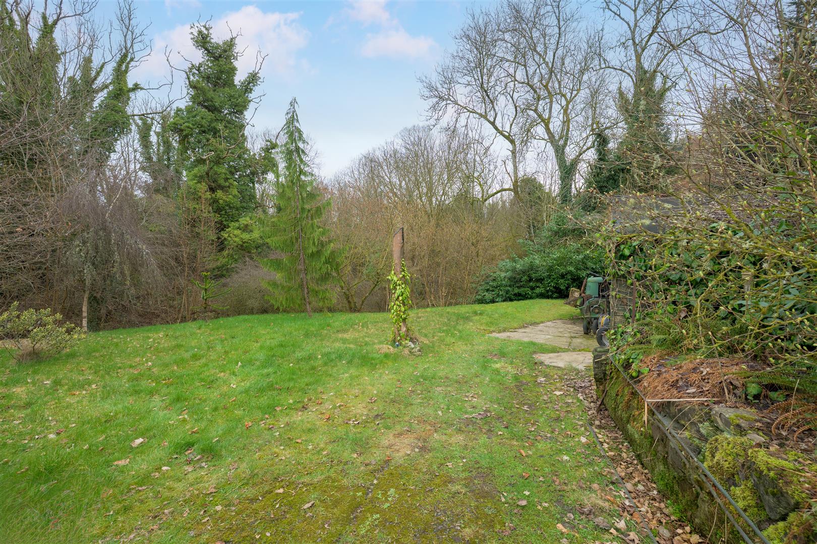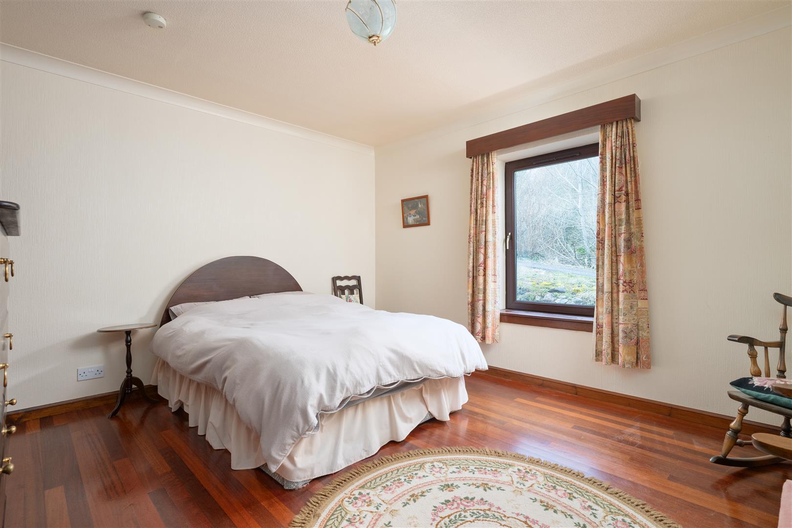 Set on a generous plot, the property features a large sweeping driveway that leads to a double garage, offering plenty of parking and storage options. The expansive garden grounds are private and surround the home, providing a serene outdoor space for gardening, relaxation, or entertaining.