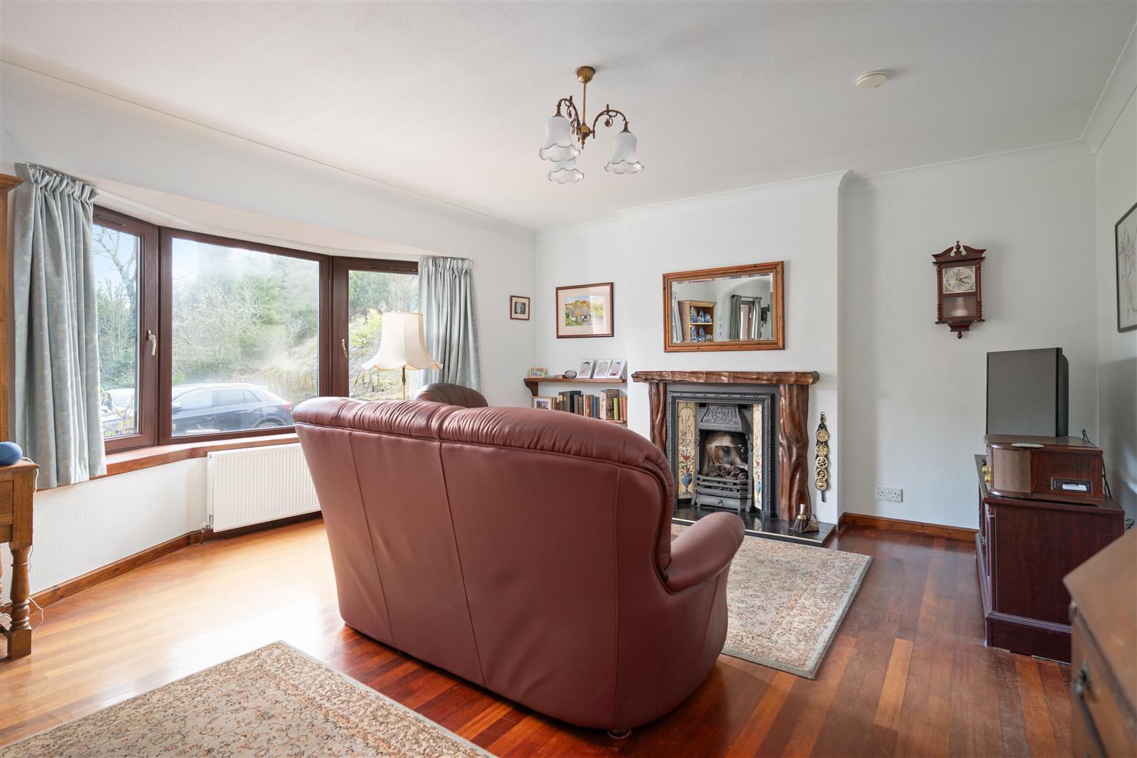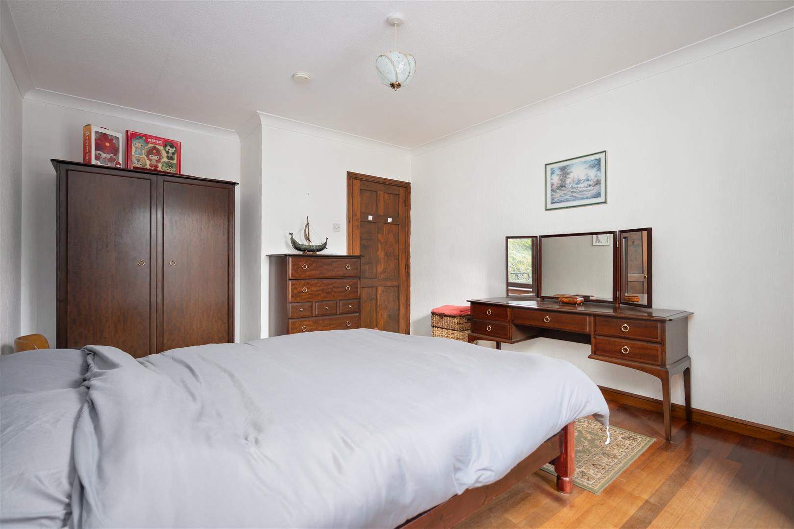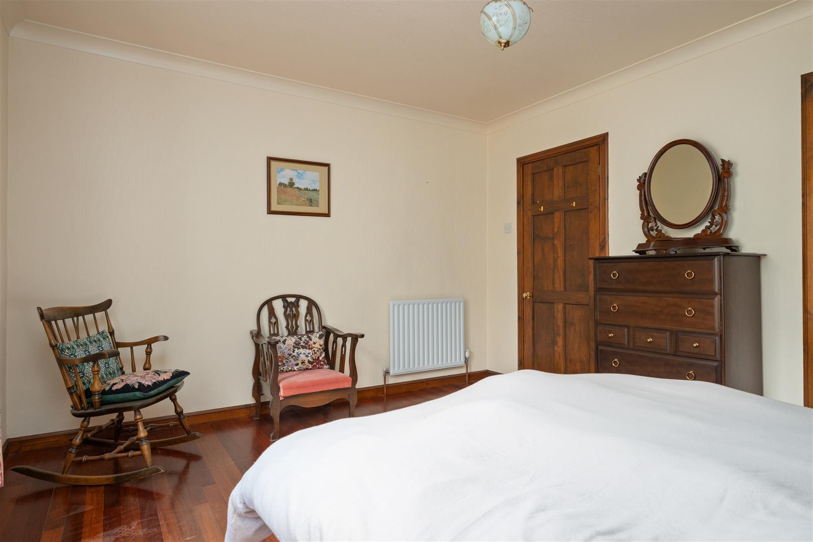 Set on a generous plot, the property features a large sweeping driveway that leads to a double garage, offering plenty of parking and storage options. The expansive garden grounds are private and surround the home, providing a serene outdoor space for gardening, relaxation, or entertaining.