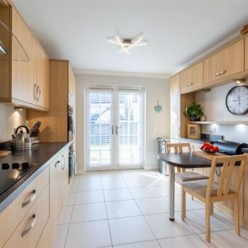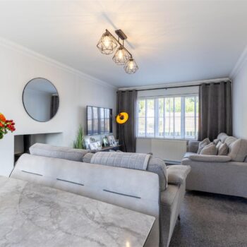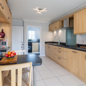 Externally, the home enjoys off-street parking via a private driveway leading to the garage, there is also two further parking spaces to the rear that pertain to the property. The fully enclosed rear garden is mainly laid to lawn with a patio area — ideal for outdoor dining and relaxation during the warmer months.