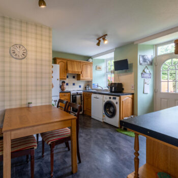 Internally, the property offers generous accommodation throughout. The ground floor comprises a welcoming entrance hall, a well-appointed kitchen, and a spacious living room with ample space for dining. A convenient downstairs W.C. completes the lower level.