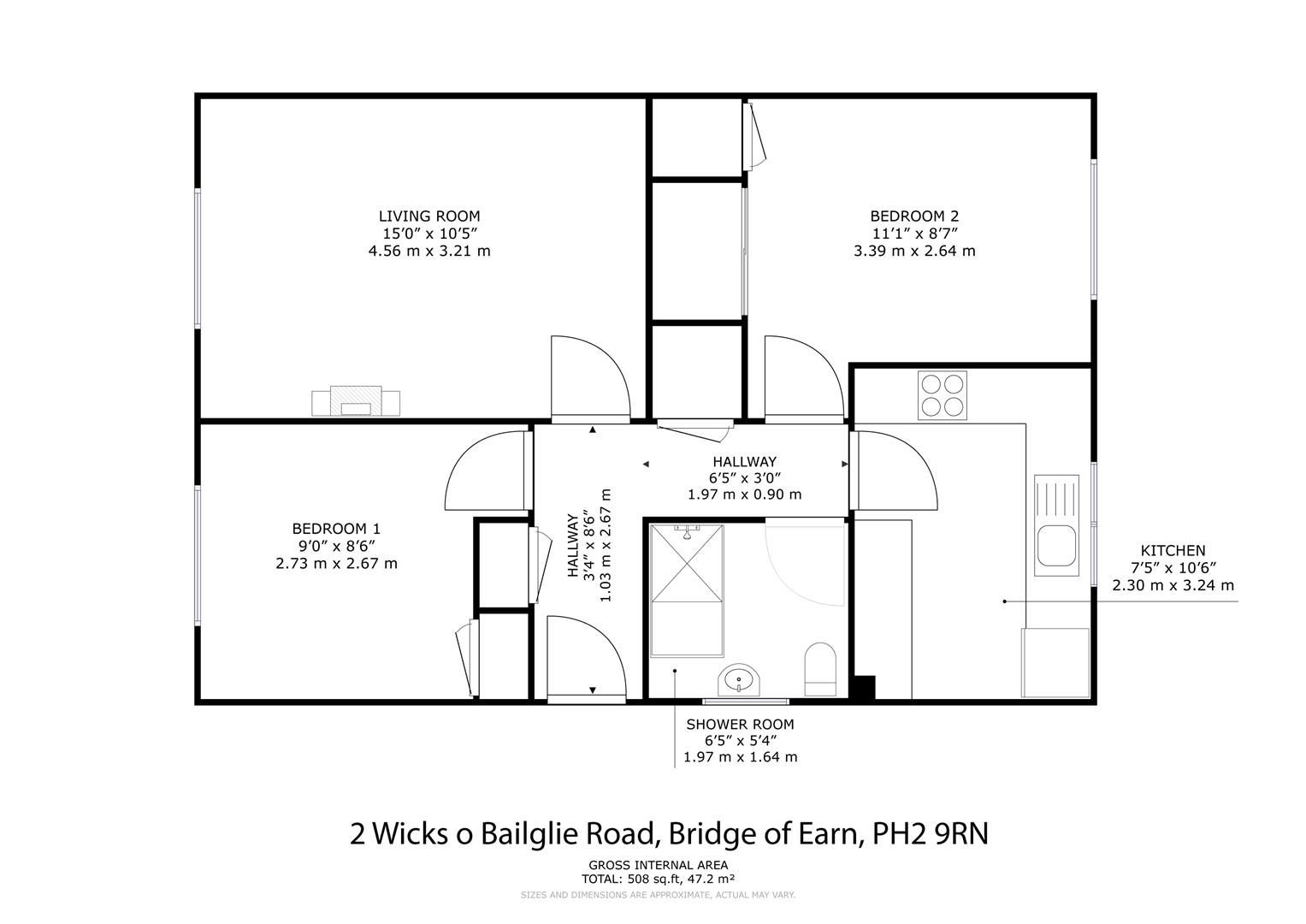 The property itself is situated close to the main street which runs through the village on which there are a range of local amenities, including a small supermarket, a primary school and a good choice of pubs and restaurants. The village also benefits from a variety of leisure facilities including tennis courts and a bowling green and is within a few minutes’ drive of the M90 motorway, which in turn provides easy commuting to all major cities and airports in the central belt.