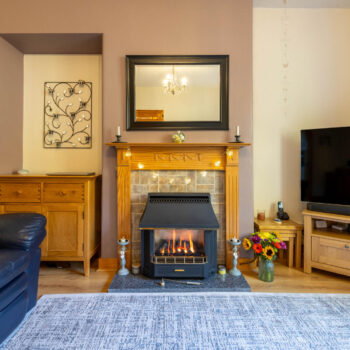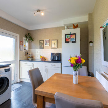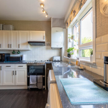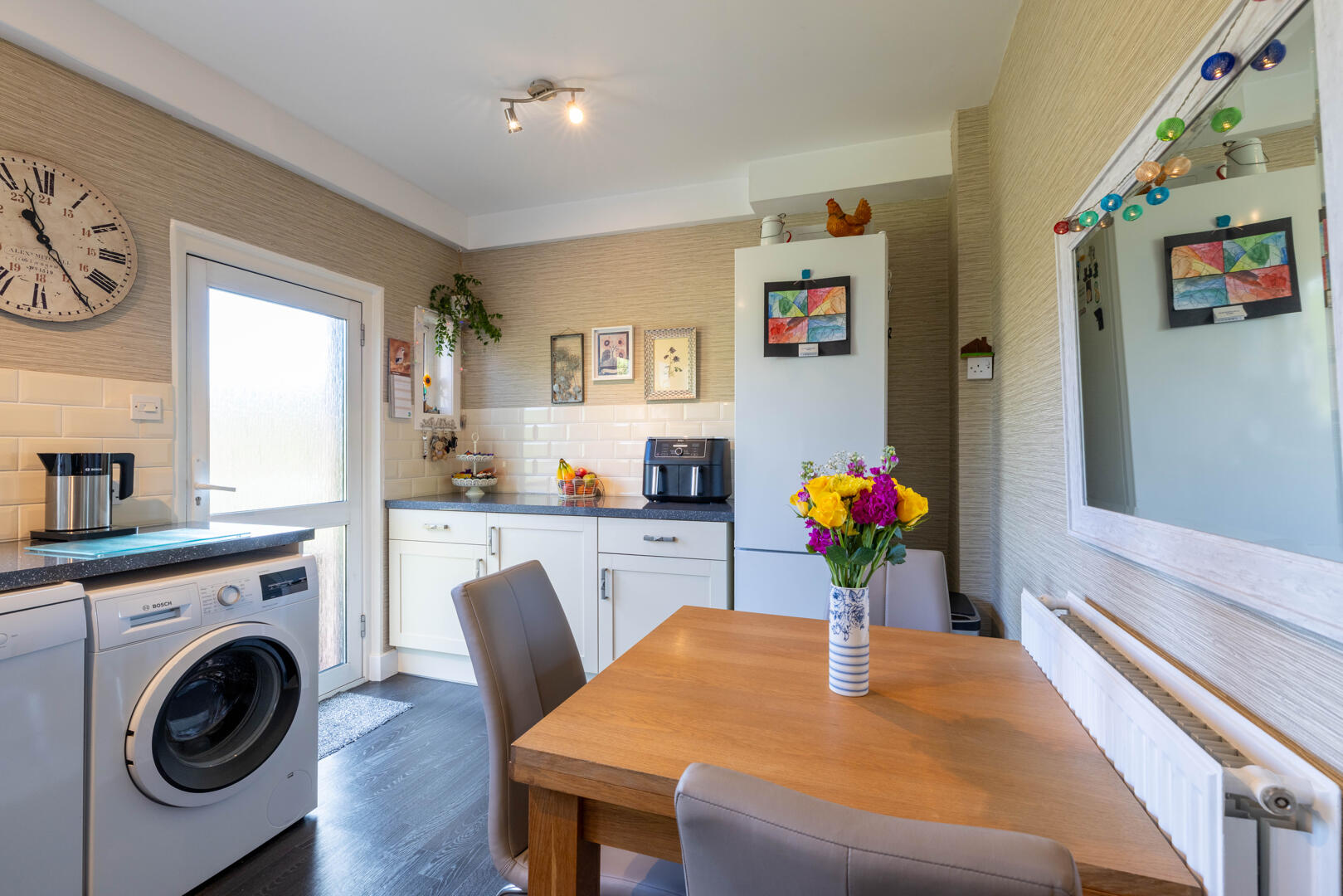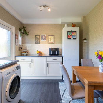 Set over two levels, the property offers bright and spacious accommodation throughout. The ground floor comprises a welcoming entrance hallway, a generous living room, a modern fitted kitchen, and a stylish family bathroom. Upstairs, there are three well-proportioned double bedrooms, each offering excellent storage space and lovely open views.